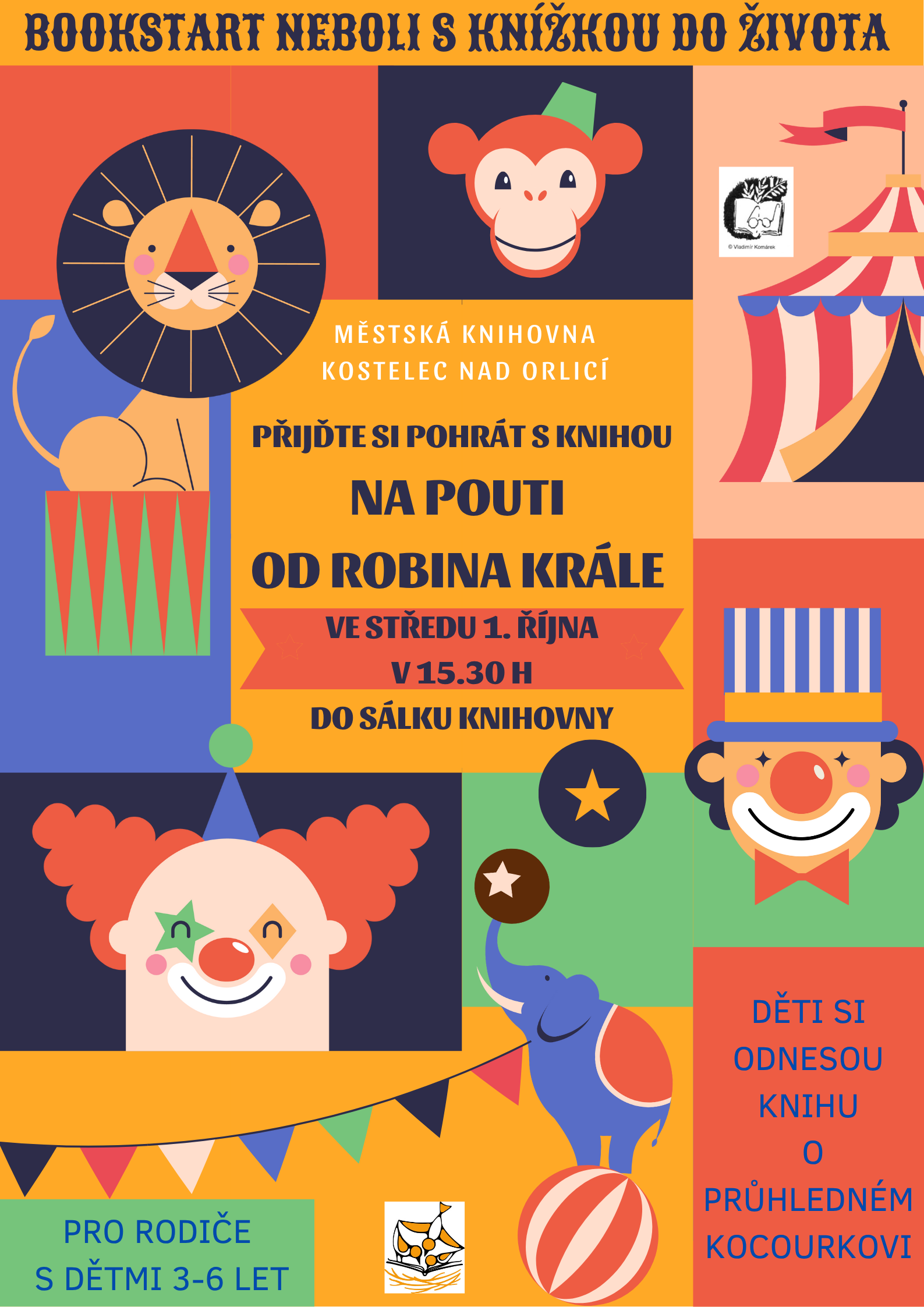 Na pouti BOOKSTART NEBOLI S KNÍŽKOU DO ŽIVOTA PŘIJĎTE SI POHRÁT NA POUTI OD ROBINA KRÁLE VE STŘEDU 1. ŘÍJNA V 15.30 HODIN DO SÁLKU KNIHOVNY PRO RODIČE S DĚTMI 3 – 6 LET DĚTI SI ODNESOU KNIHU O PRŮHLEDNÉM KOCOURKOVI